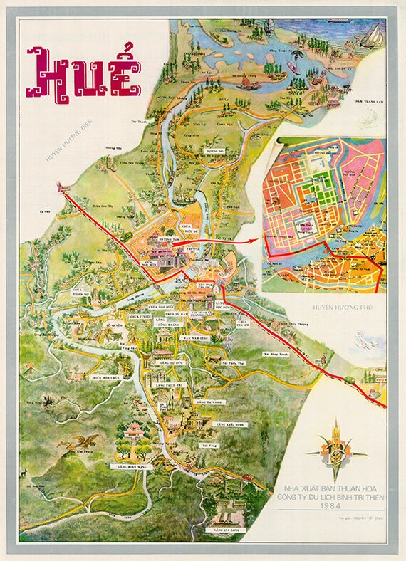 Vintage Map of Hue Vietnam, Hue Map, Hue Vietnam, Old Hue Map, Hue